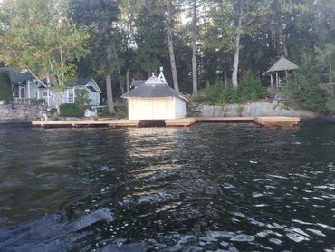 After replacing the cribs, docks and straightening the boathouse we felt very proud to save this historic building.